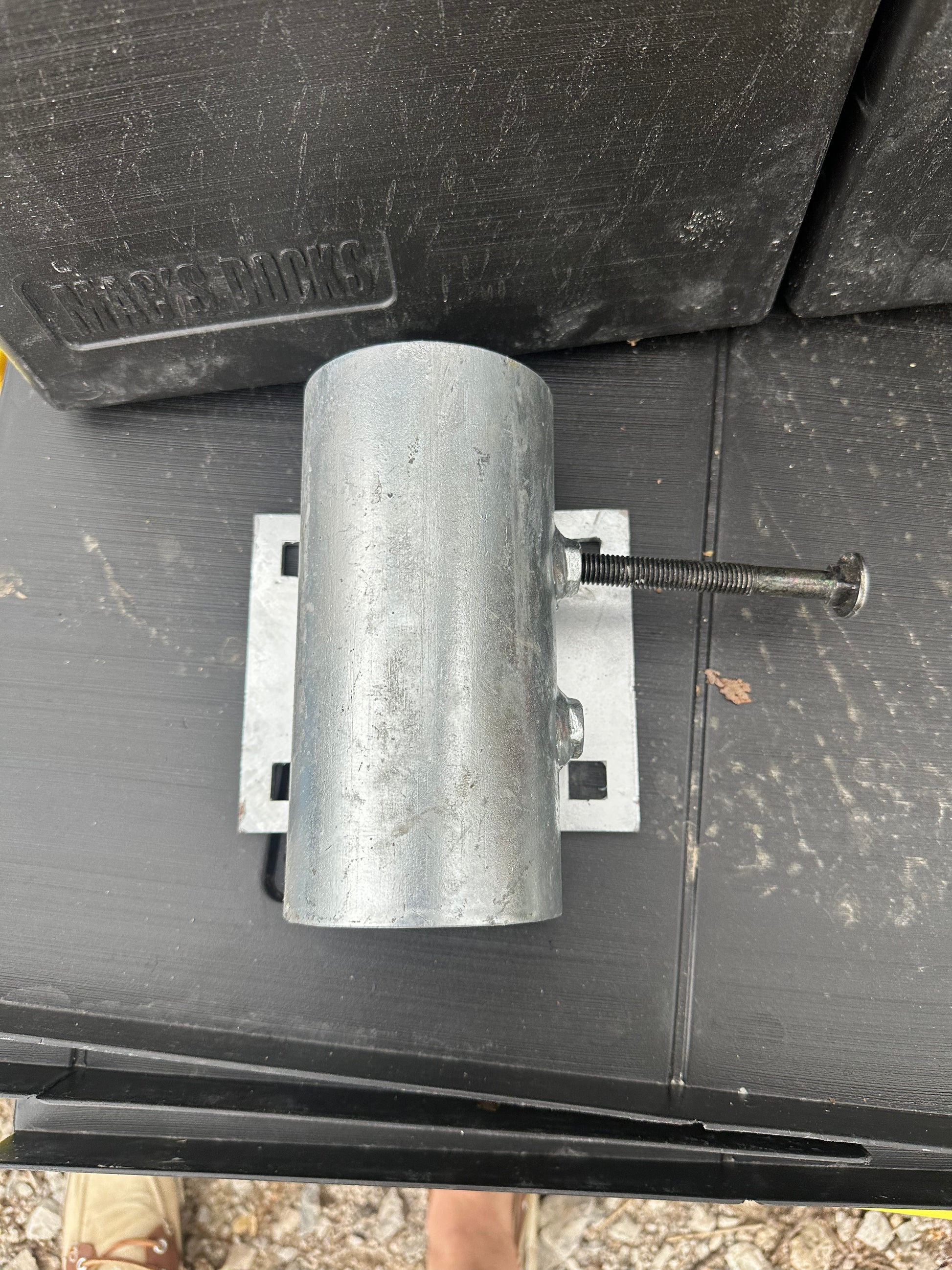 - PLATE SPECS - These galvanized dock pipe leg holders each Q235 steel plate measure 6x5", ะค76mm inner diameter, and are 6mm thick. Holes are pre-drilled on all 4 corners of the metal plate, each hole measuring 1/2โ in diameter - NOT Include Carriage Bolts.